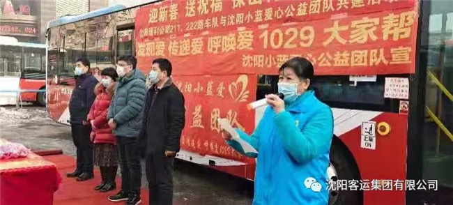 1月24日上午10時,沈陽小藍愛心公益團隊,來到大北門211、222路車隊,公益團隊與車隊共同舉行了“迎新春 送祝福 保出行 獻真情”活動。