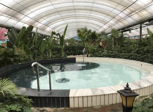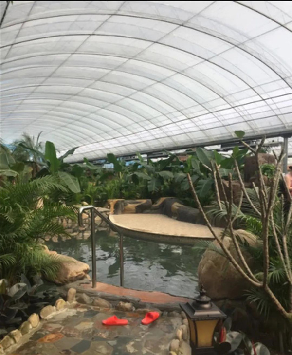 溫泉內(nèi)各種功能性泡池,包涵游泳池,大型漂流河,按摩池,兒童戲水池等20余個(gè),室外泡池3個(gè),大型豪華游泳池,海南風(fēng)情的綠色植物覆蓋的超級(jí)氧吧,空氣清新,香蕉樹,荔枝,芒果等等,水果樹科普展示,一年四季如畫,小橋流水,詩(shī)情畫意的浪漫生活品味,熱炕可同時(shí)容納200人。