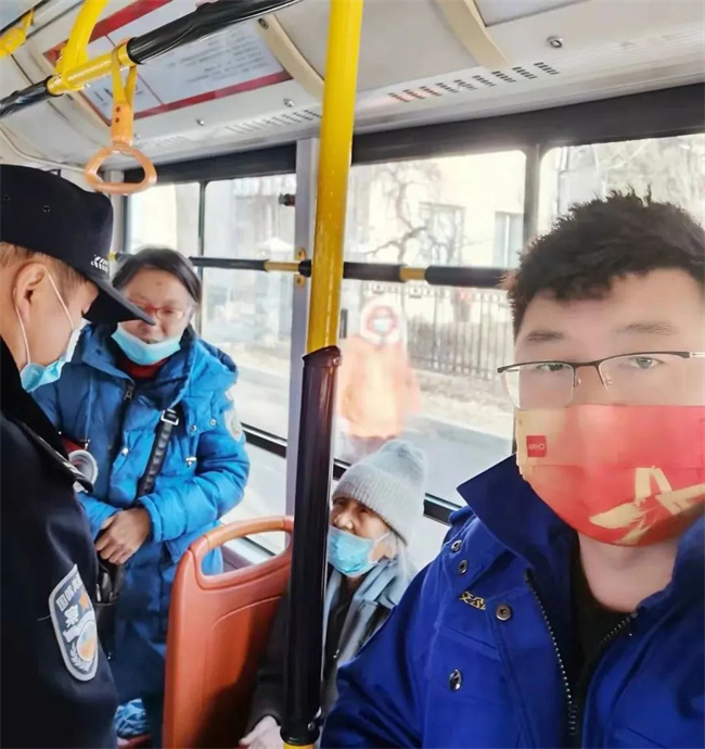 何志強(qiáng)將車輛停穩(wěn),攙扶著老大爺一步一步下車,隨后橫過馬路,登上了對面準(zhǔn)備出發(fā)的298路公交車,并安排老大爺坐在離后門最近的位置,詢問老大爺?shù)侥睦锵萝?,一邊提醒老大爺注意聽報站器語音,一邊囑咐當(dāng)班駕駛員注意幫忙照顧一下這位坐過站的老大爺。