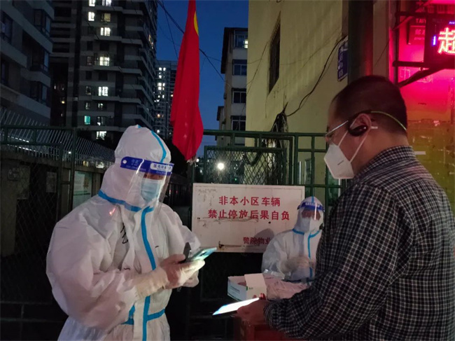 有一次入戶核酸檢測(cè),王眾和同伴上了31層的高樓,等工作結(jié)束時(shí),電梯沒有電了?!拔覀円恍腥?,從31層樓走下了1樓。下來時(shí),個(gè)個(gè)累得氣喘吁吁,腿都哆嗦,當(dāng)時(shí)每一個(gè)人戴著隔離面罩、N95口罩,穿著防護(hù)服,大家都很辛苦……”