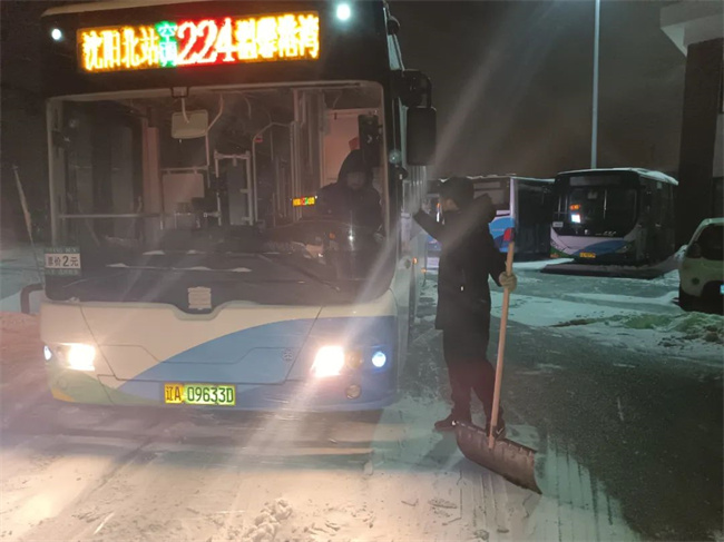 面對降溫降雪天氣,沈陽客運集團秉持全心全意為乘客服務的宗旨,確保公交車輛安全有序運營,滿足市民雪天出行需求。