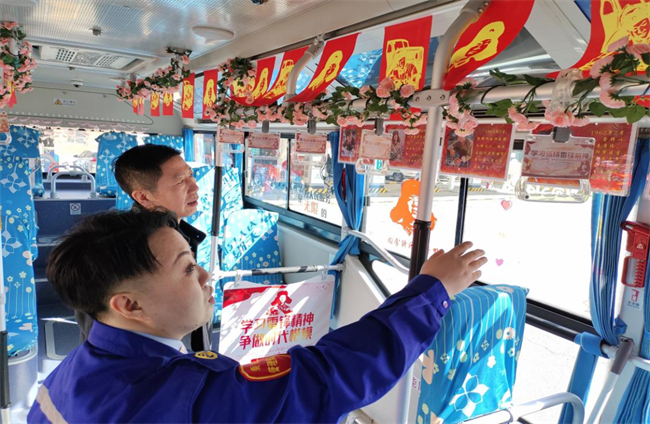 258路以“學習雷鋒精神、弘揚傳統(tǒng)美德”等主題制定車廂文化,讓車廂成為流動的課堂,打造以學習雷鋒精神為主題的車廂亮化活動,車隊以五大主題為基礎,以張貼紅色基因宣傳圖、標語等形式對車輛進行正能量宣傳,28輛單車車體全部以弘揚雷鋒精神紅色基調為載體分別制作了鮮艷的五星紅旗黨旗、雷鋒事跡說明、雷鋒粘貼等,讓雷鋒精神成為公交行業(yè)的文化品牌,讓雷鋒奉獻精神激勵世代銘刻在心,讓雷鋒精神在新時代廣泛傳播,在新時代綻放出璀璨的光芒。充分體現公交行業(yè)愛國愛黨、學習雷鋒、敬業(yè)勵志、敬老愛老等中心思想,極大地激發(fā)和調動了廣大駕駛員的工作熱情與干勁。