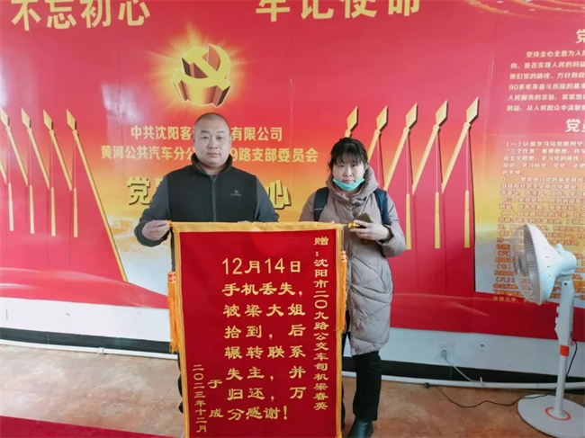 這部價值5000多元的手機失而復得,失主于女士非常開心,為表感激之情,趁著元旦假期,于女士將一面錦旗送到了209路車隊。