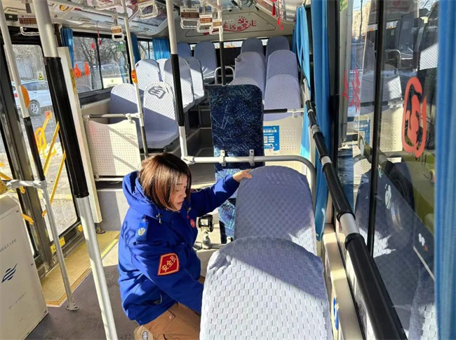 “看著這輛車裝飾的這么好,心情也隨著變好了!車上的座墊太貼心、太暖心了!”1月3日下午,一位公民記者在乘坐沈陽(yáng)客運(yùn)集團(tuán)通運(yùn)公司239路公交車時(shí),被裝飾一新的車廂布置所吸引,隨機(jī)采訪了該車的駕駛員方堃。