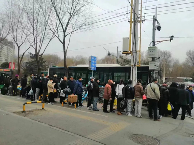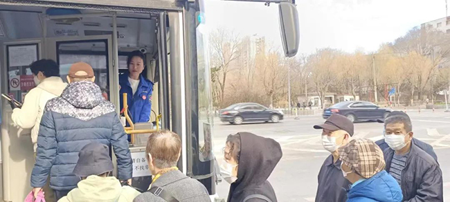 清明前夕,387路客量有所增加,金芳主動(dòng)擔(dān)任起乘務(wù)員的職責(zé),不斷提醒乘客小心慢上,扶好站穩(wěn)。在她耐心的疏導(dǎo)下,乘客們沒有出現(xiàn)浮躁焦慮、一擁而上的混亂場面,而是自覺排起了長長的隊(duì)伍,安全有序登上了這趟387路公交車。