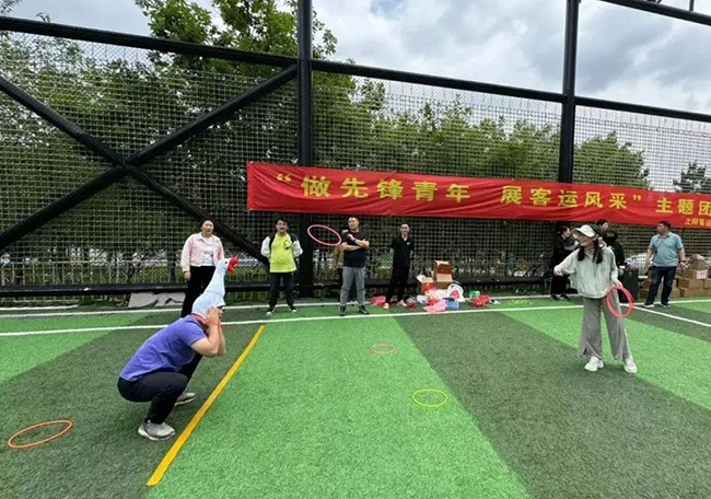 參觀結(jié)束后,大家來到莫子山公園炫彩青年運(yùn)動場,圍坐在活動場地,分享彼此的感受和收獲,隨后在工作人員的引導(dǎo)下開始了緊張而刺激的團(tuán)隊(duì)體育競技游戲。