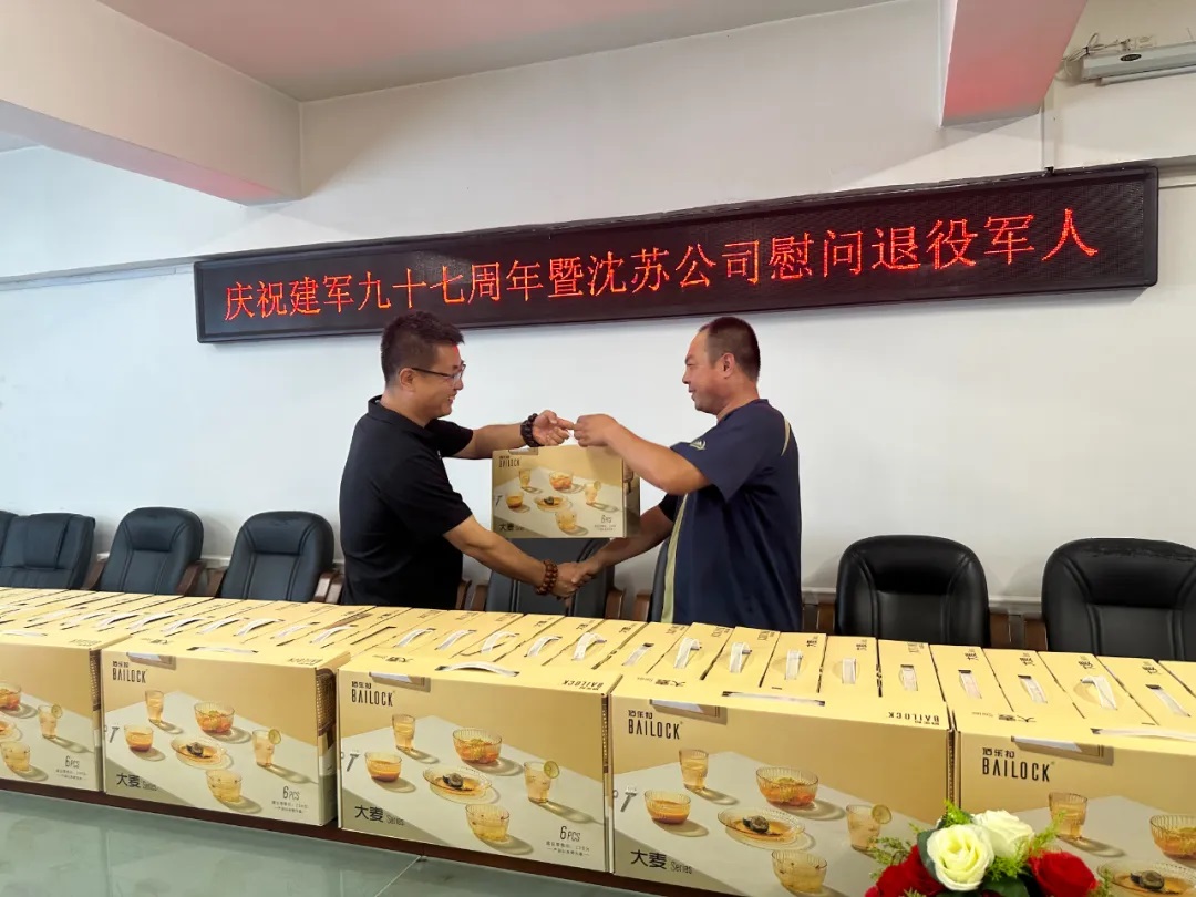 堅(jiān)守不變初心,續(xù)寫嶄新榮光。在第97個(gè)建軍節(jié)來(lái)臨之際,為深入學(xué)習(xí)貫徹黨的二十大精神,厚植愛國(guó)主義思想,關(guān)愛退役軍人,增進(jìn)職工對(duì)公司的歸屬感,近日,沈蘇公司舉辦慰問退役軍人活動(dòng)。