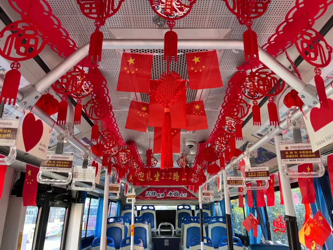 國(guó)慶前夕,駕駛員精心清潔車輛、裝扮車廂,處處洋溢著節(jié)日氣氛。