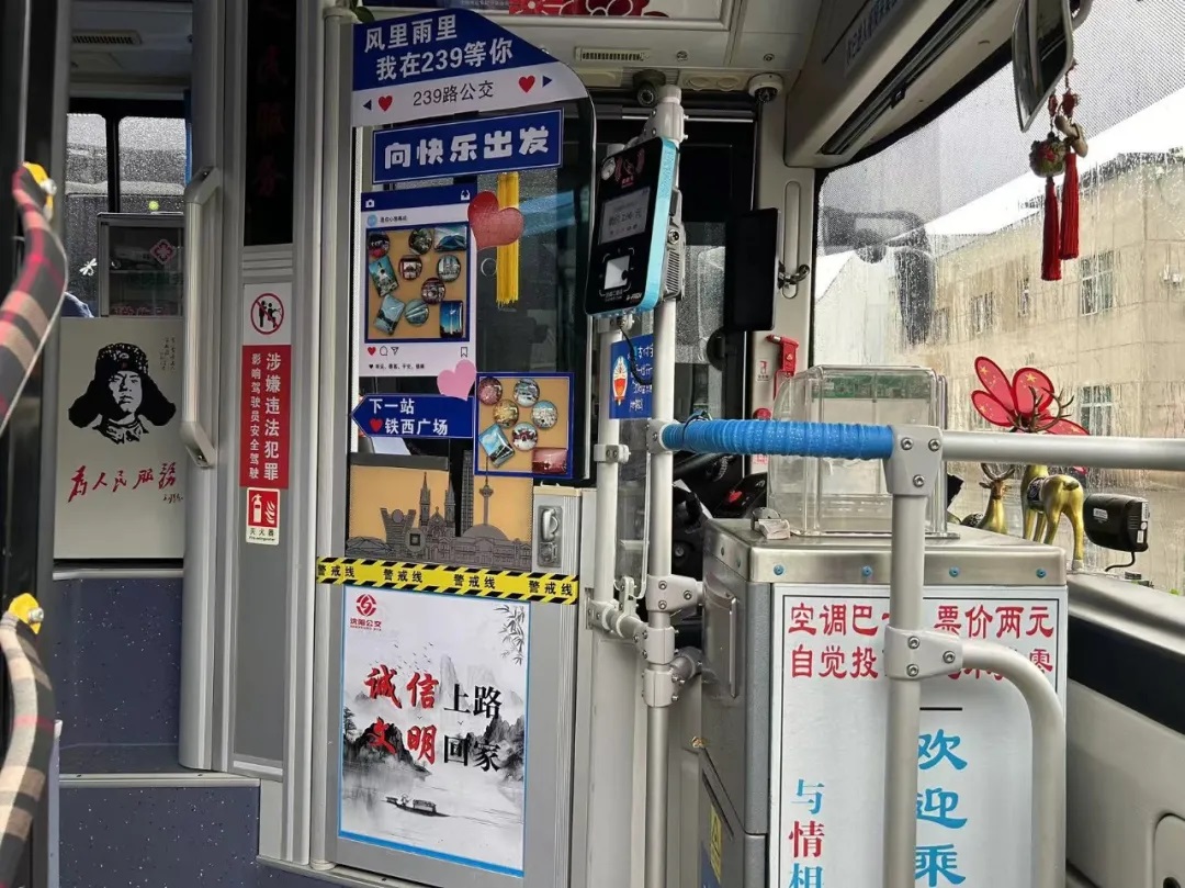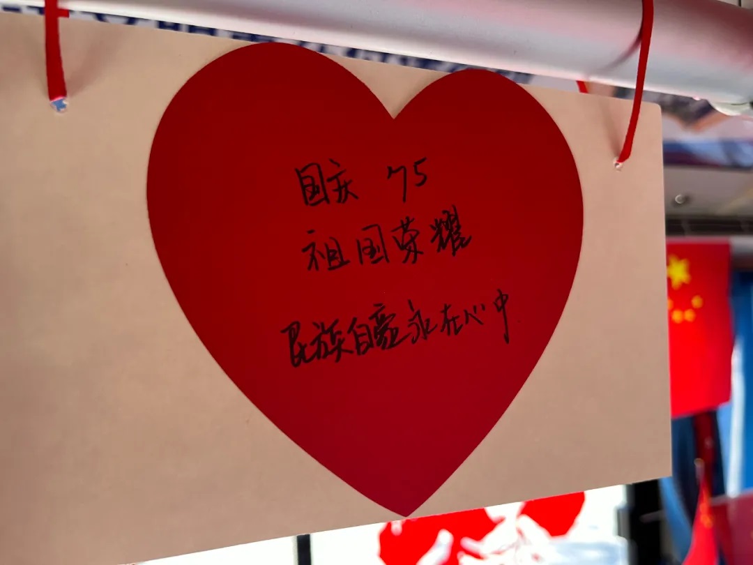 各車隊(duì)準(zhǔn)備了各式各樣的裝飾品精心裝扮自己的車廂。駕駛員們將自己對(duì)祖國(guó)的美好祝愿注入在這十米車廂之中,希望能把這份心意傳遞給每一個(gè)人。市民們?cè)诔塑嚂r(shí)被這份情感所感染,也紛紛留下了自己的心愿和祝福。