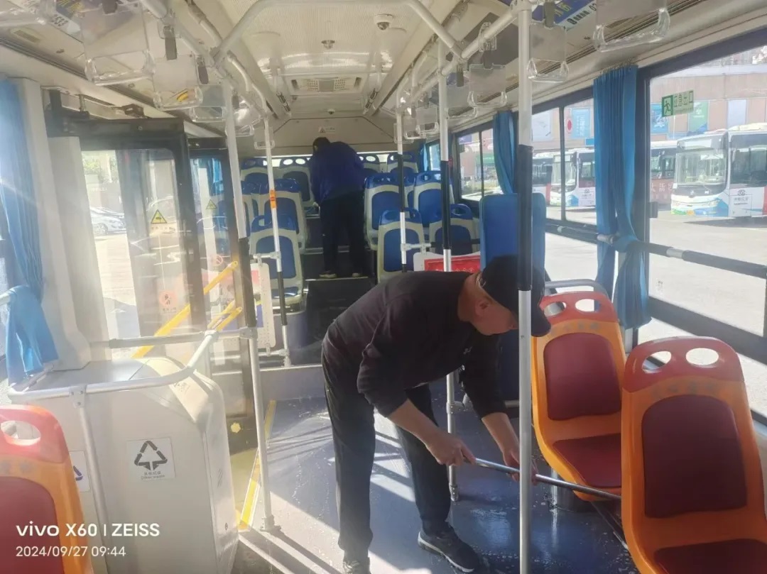 為了迎接國(guó)慶假期到來(lái),沈蘇公司組織車隊(duì)職工對(duì)車輛、站務(wù)室、樞紐站等進(jìn)行清潔打掃,并對(duì)車輛進(jìn)行全面檢修,為乘客提供舒適安全的乘車環(huán)境。