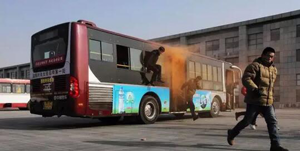 發(fā)現(xiàn)公車起火要立即告知司機停車,打開車門,有序撤離?;饎莶淮蟮脑?,可以用車上的滅火器進行自救滅火,滅火器一般在司機坐椅靠背后或車門邊。火災發(fā)生時一定要保持冷靜,不要推擠,因為混亂的人群中,逃生的幾率會大幅降低。