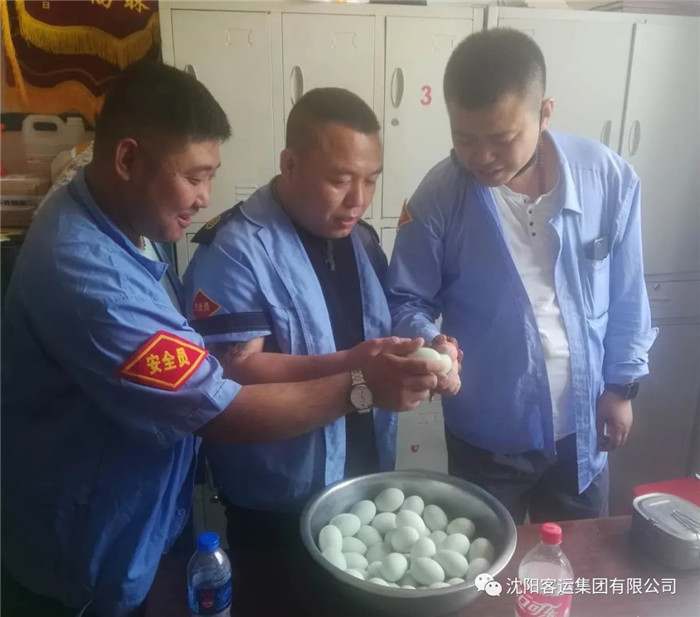 端午節(jié),239、252車隊(duì)為一線員工準(zhǔn)備了粽子、雞蛋、水果等食品,駕駛員們吃粽子頂雞蛋,享受著節(jié)日的快樂。
