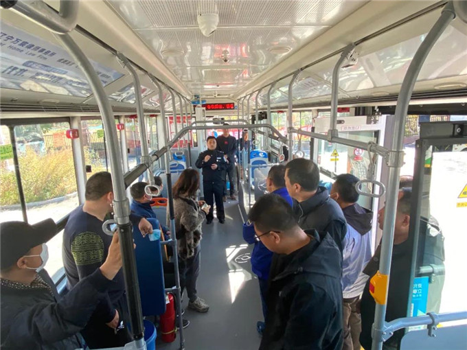 消防安全演練中,李教官在公交車上講解安全錘的正確使用方法,并模擬公交車失火后的逃生方法及注意事項,迅速、有序、規(guī)范地從公交車出口疏散。隨后,李教官詳細介紹滅火器的正確使用方法及滅火時的注意事項,現(xiàn)場指導(dǎo)職工進行滅火演練。