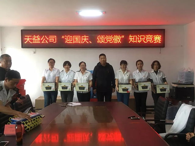 近日,天益公司黨委在公司會(huì)議室舉行“迎國(guó)慶、頌黨徽”黨建知識(shí)競(jìng)賽活動(dòng),來自公司所屬11個(gè)黨支部,共33人參加競(jìng)賽;公司黨委副書記、紀(jì)委書記趙立東、副經(jīng)理丁峰同志、基層各黨支部書一同參加了本次比賽。