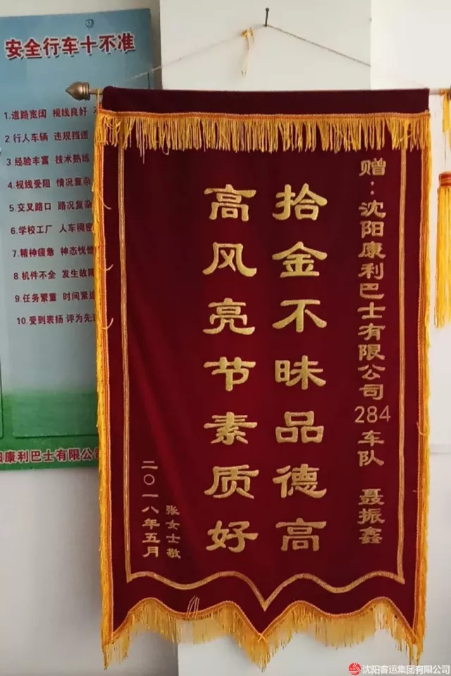 近日,康利公司284路車(chē)隊(duì)接連收到兩面錦旗。5月8日,284路駕駛員劉曉峰在車(chē)輛抵達(dá)終點(diǎn)站時(shí),發(fā)現(xiàn)路邊有一部手機(jī),好心的劉曉峰連忙撿起手機(jī),因?yàn)檫€要行車(chē),便將手機(jī)上交車(chē)隊(duì),請(qǐng)車(chē)隊(duì)工作人員幫忙尋找失主。工作人員通過(guò)各方努力,最終找到了失主薛先生。“手機(jī)雖不是很貴重,但里面有我很重要的資料和照片,本來(lái)我都不抱希望了,沒(méi)想到這種拾金不昧的好人好事也能發(fā)生在我的身上!”失主薛先生激動(dòng)地說(shuō),為表達(dá)自己的感激之情,薛先生親手把一面錦旗送到了劉曉峰手中。